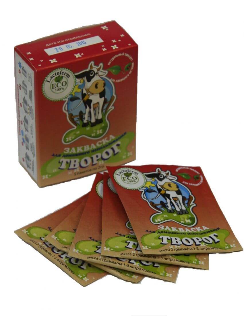 Закваска для домашнего приготовления Творога 5 пакетов по 2 грамма на 15 литров молока.